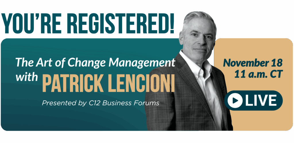 Event Details Date & Time: November 18 at 11 a.m. CTLocation: Online (Check your inbox for your unique Zoom link)Duration: 60 minutes You’ll receive a confirmation email shortly with all the details and we’ll also remind you as the event approaches. At C12, we believe leading change is part of stewarding businesses for a greater purpose. We’re honored to have you join us on our upcoming webinar. LEARN MORE ABOUT C12