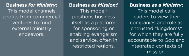 Understanding our role as stewards enables us to recognize how faith should practically impact our business operations. Over the past century, various models have emerged to describe the relationship between faith, business, missions, and ministry: